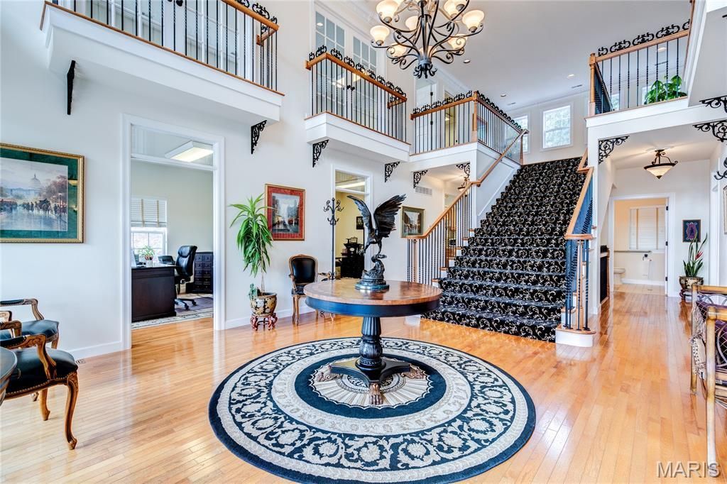 Elegant UPSCALE low-rise office/retail building just 5 blocks from Florissant City Hall on HIGH-TRAFFIC corner lot at Rue Saint Francois. 5600 sq ft on 0.2975 acre lot, walking distance to quaint restaurants, shops & salons in desirable Old Town Florissant. Incredible CURB APPEAL with stacked wrap-around covered porches, grid/transom windows, lush professional landscaping with fountain feature and post light. Premium CORNER SIGNAGE, low-maintenance vinyl siding, brick detail, enclosed soffit/fascia, rear quad carport. Grand lobby entrance with high-end finishes. Main floor features: event room with double door entry, ceramic tile flooring; 3 offices with wood flooring; kitchen area with dishwasher and refrigerator. Second floor features: 5 offices with carpet, unique interior balconies with iron railing. Basement is finished: dual door entry on both sides, plus 2 full windows; restrooms with showers; laundry area. Five HVAC systems include 2 zones main, 1 upper and 2 lower. Parking for approx 19 vehicles (4 covered spaces) with easy access from both streets. White vinyl privacy fence alongside rear parking lot. Furnishings are negotiable. Leased month-to-month for $90k/yr through October. Close to Highways 67/270/170.